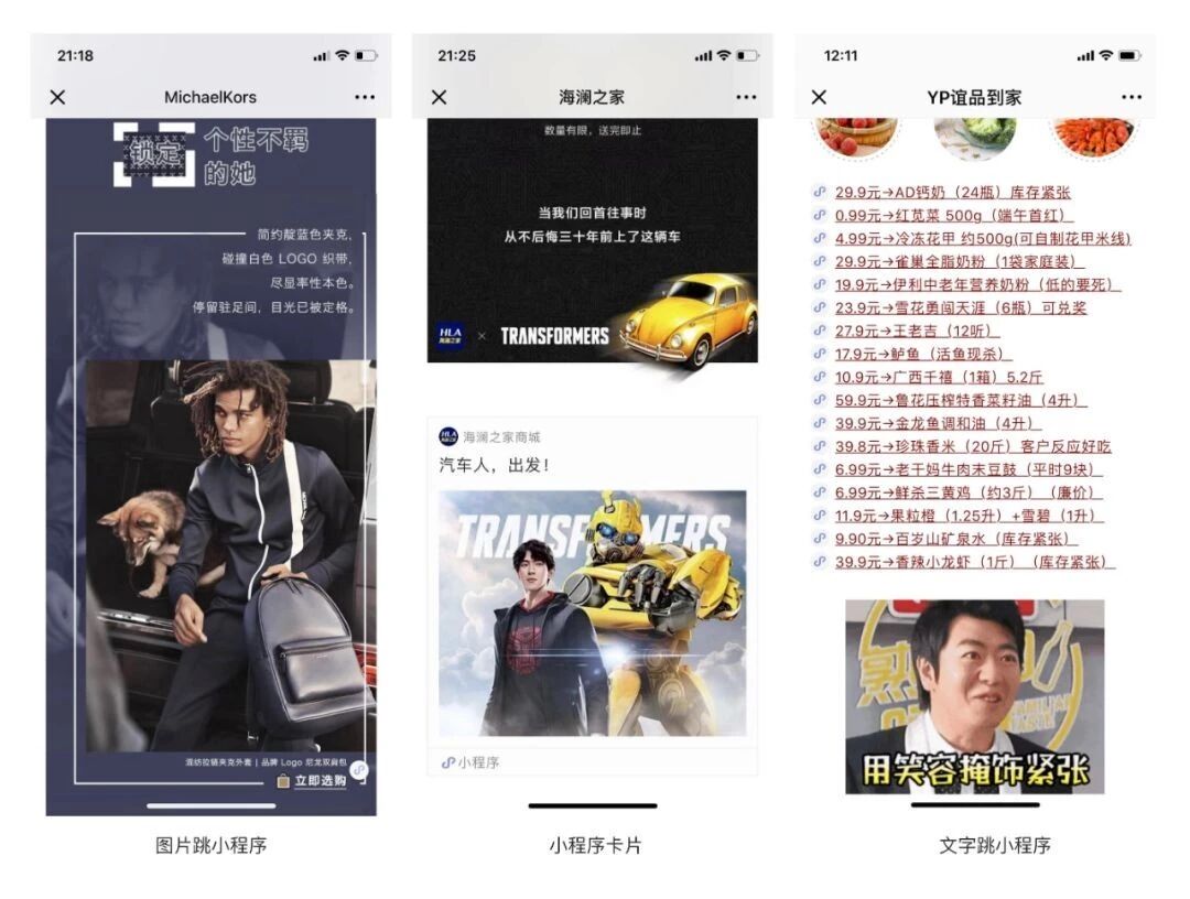 公众号插入小程序,支持文字、图片、小程序卡片3种形式: