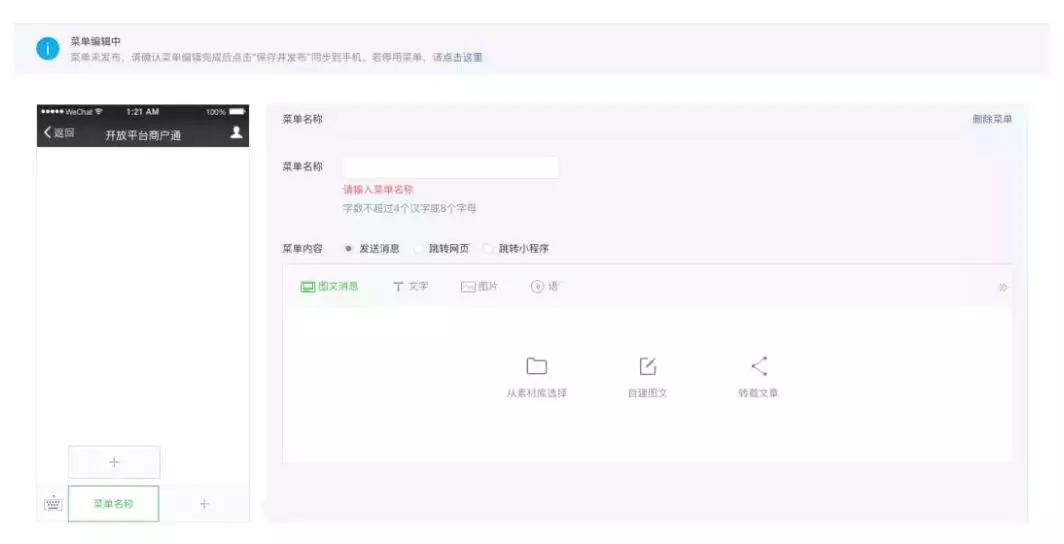 设置路径:公众号后台-功能-自定义菜单-设置菜单内容为跳转小程序