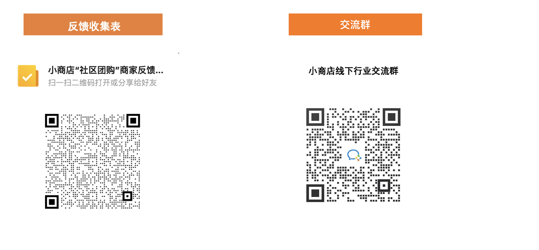 如有任何问题,可通过以下收集表向小商店官方进行反馈,也可在交流群中与其他商家讨论。