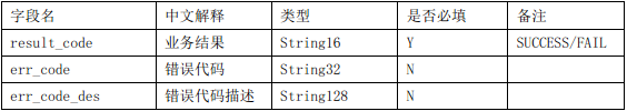 以下字段在return_code 和result_code都为SUCCESS的时候有返回: