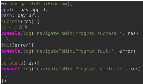 1、医院小程序下单后获得pay_appid与pay_url后,使用这两个参数跳转到医保支付小程序。 跳转的小程序接口点击查看