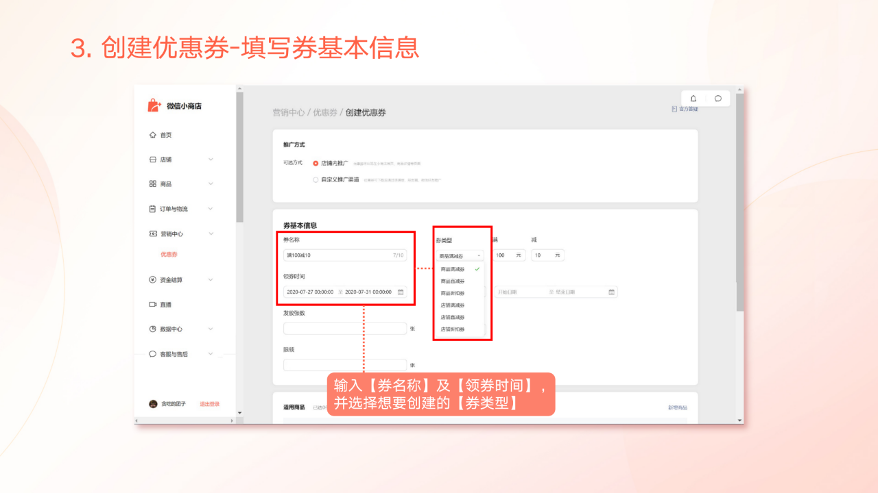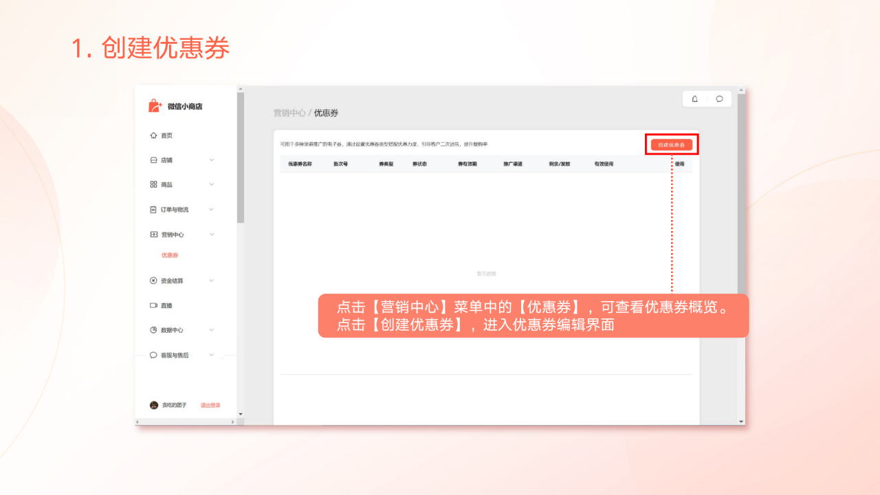 以下是「营销中心-优惠券」模块操作指引的PPT版本,欢迎大家继续对照查看~