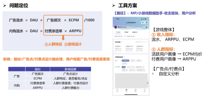 绝大部分的调优动作集中在广告频次/ECPM、付费渗透率/ARPPU 这几个效果指标上,这些都与游戏的人群特征、游戏设计有关。