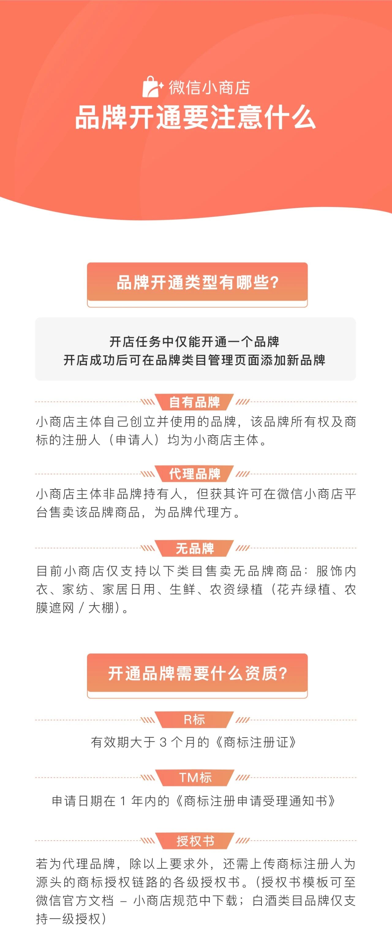 品牌开通详细规则,请到【微信官方文档】小商店板块查看。