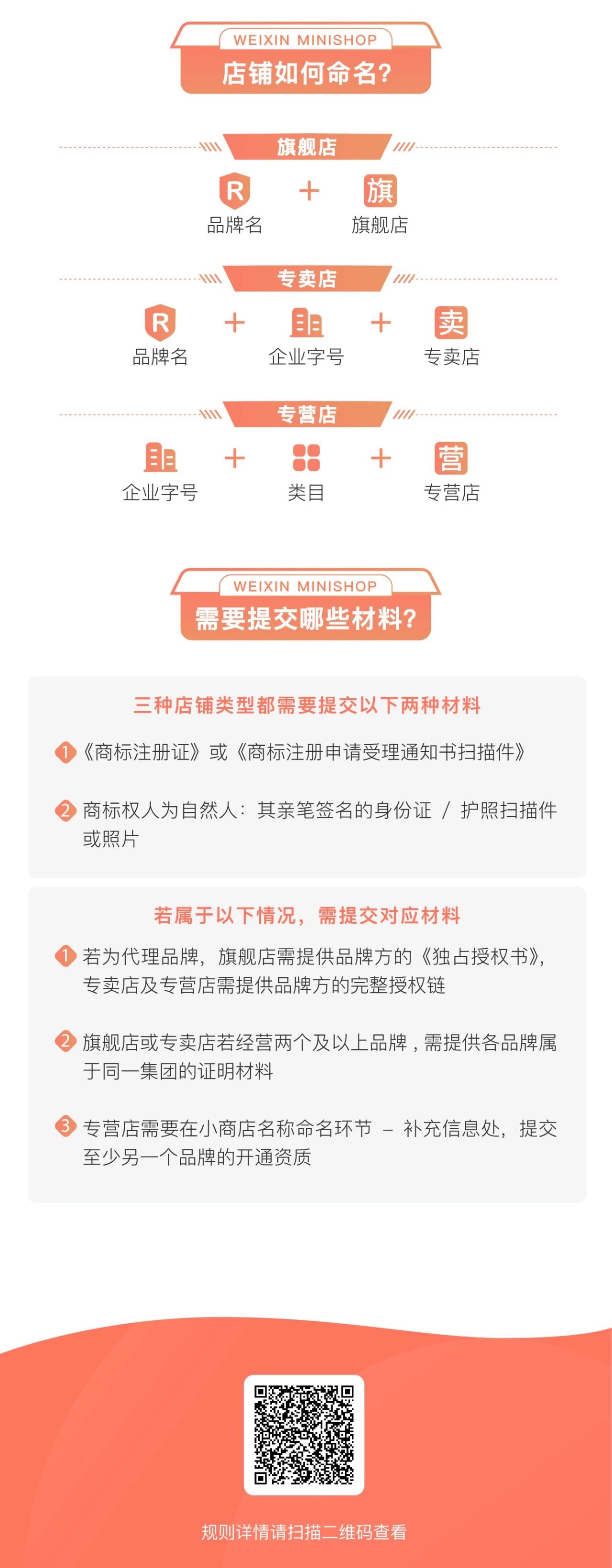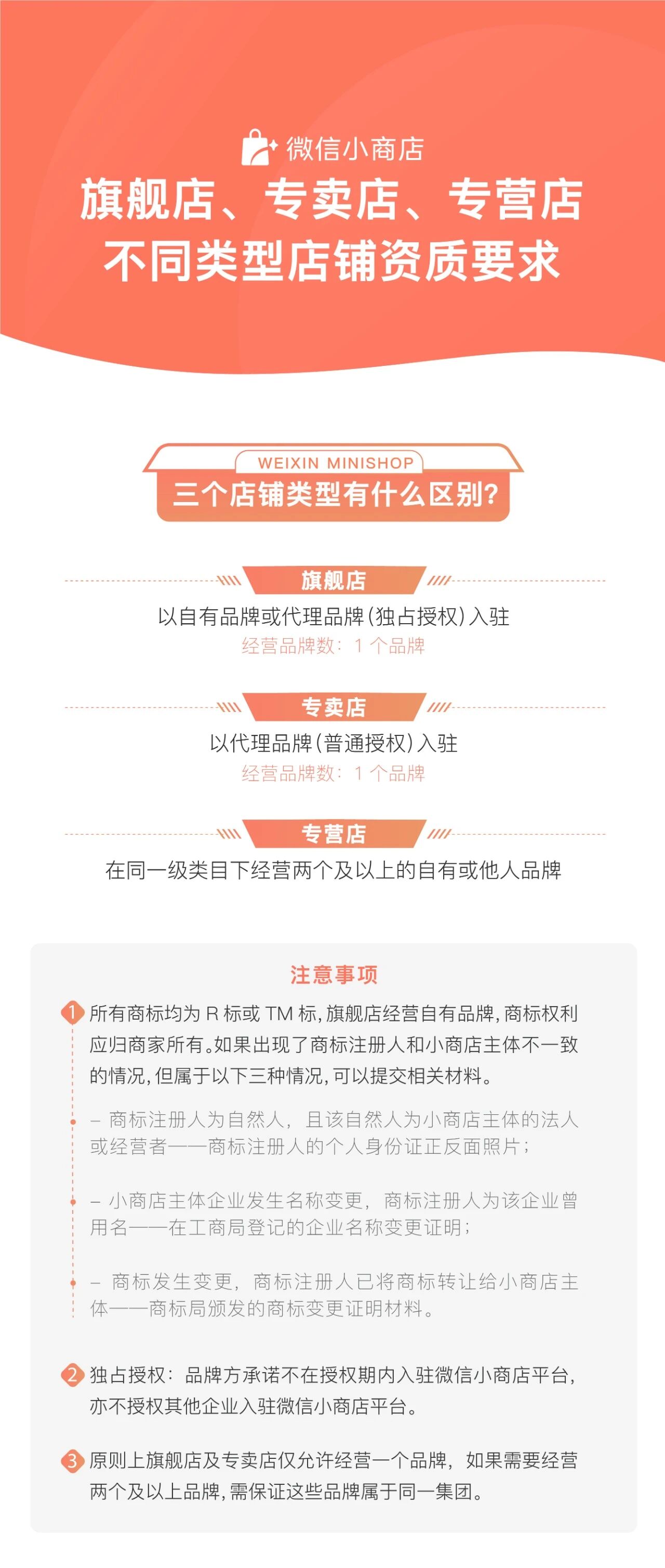 有关旗舰店、专卖店、专营店的详细规则,请到【微信官方文档】小商店板块查看。