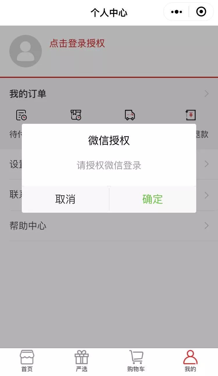 以这个拼单小程序为例,用户可先浏览商品信息,查看商品详情。如果用户心动了,点击“我的”进入个人中心授权登录即可下单;如果用户犹豫不决,还可以退出登录页面继续逛。