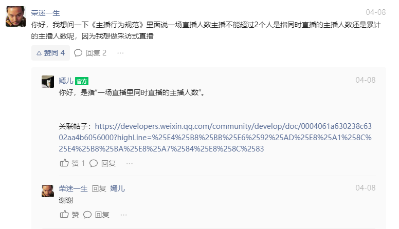 接入过程中如遇到问题,可在【微信开放社区】小程序直播主页发帖交流。
