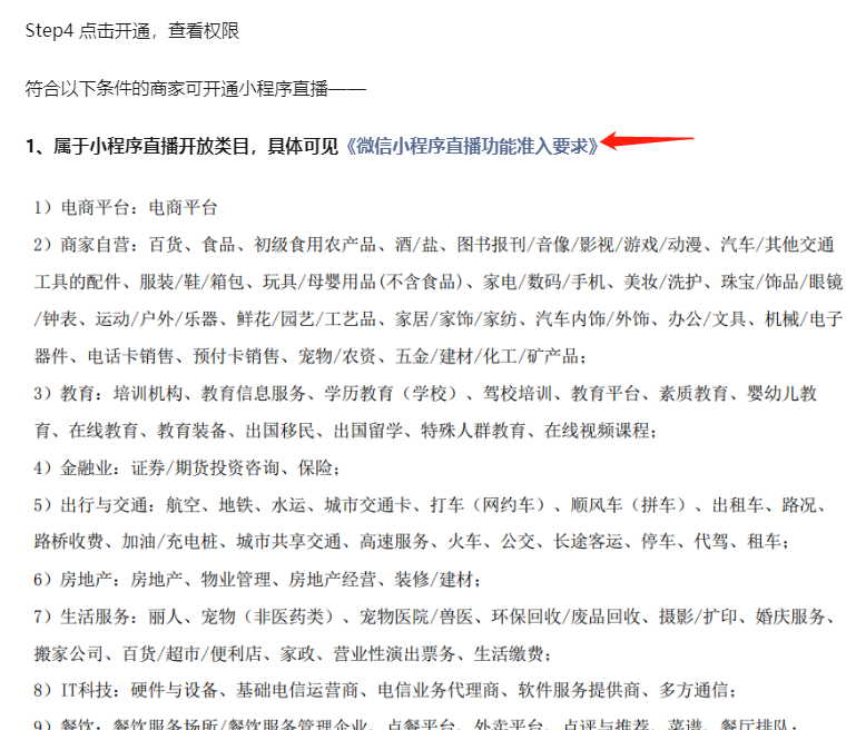 ① 属于小程序开放类目,具体见《微信小程序直播功能准入类目要求》