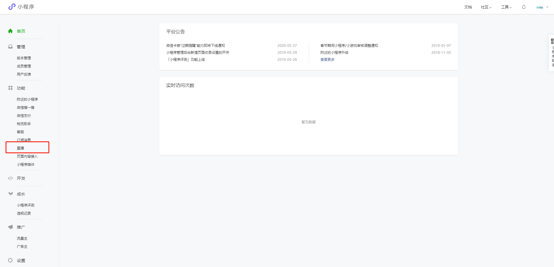 直播需要基于小程序,如还未创建小程序,可按 流程指引 创建并开发。