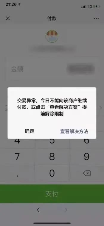 支付时显示“交易异常,今日不能向该商户继续付款,或点击查看解决方法提前解除限制”