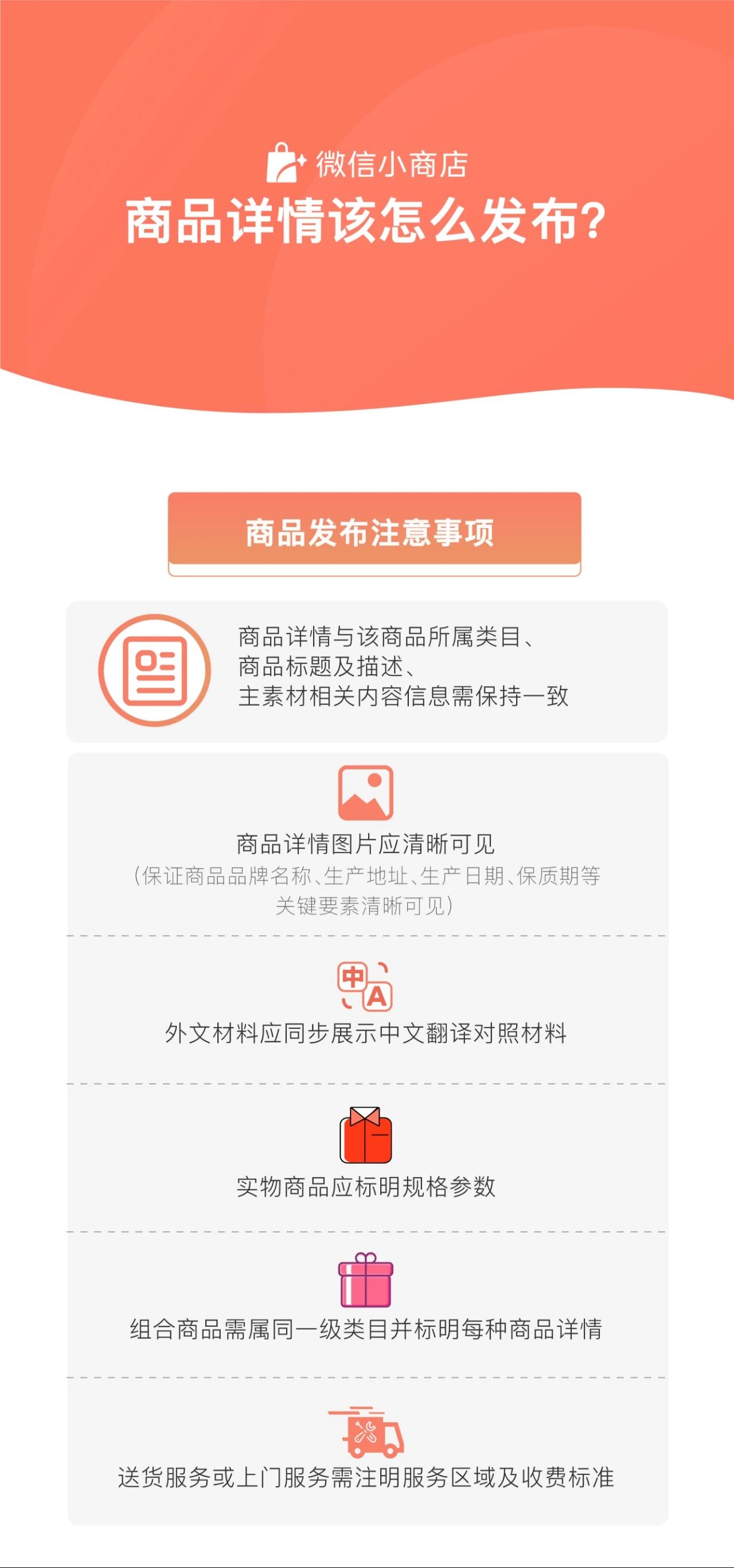 更多商品详情发布规则,请到【微信官方文档】小商店板块查看。
