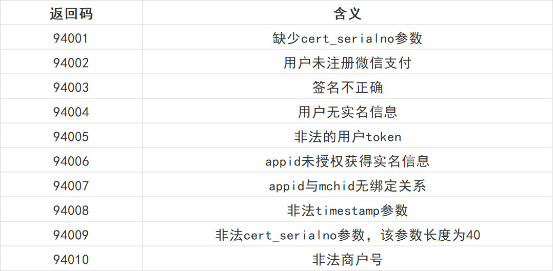 经过用户授权,可获得用户在微信支付认证的姓名以及身份证信息(非身份证的其他证件信息暂不提供授权)