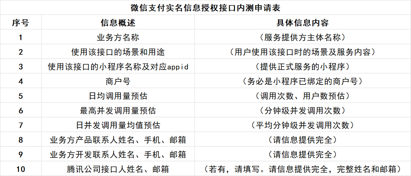 满足第二节中描述的开放类目的小程序,可申请微信支付实名授权接口。请按照如下描述,进行接口申请。
