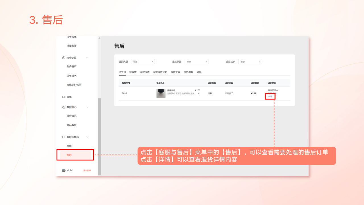 以下是「客服与售后」模块操作指引的PPT版本,欢迎大家继续对照查看~