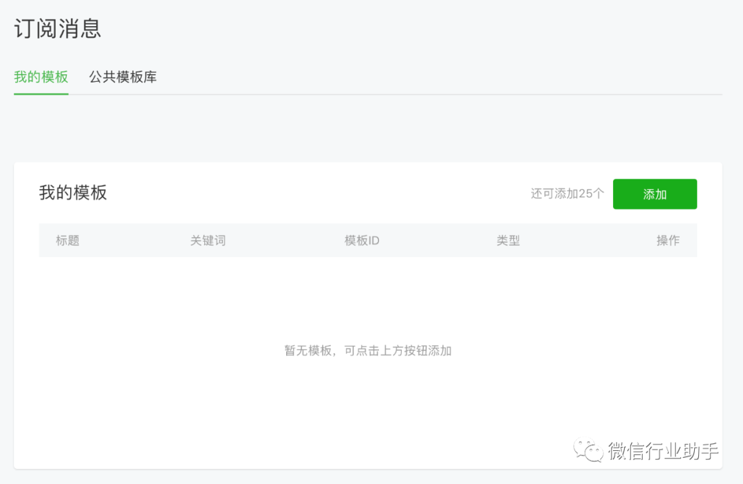 登录小程序后台,在左侧功能栏中,选择“订阅消息”,选择“添加”