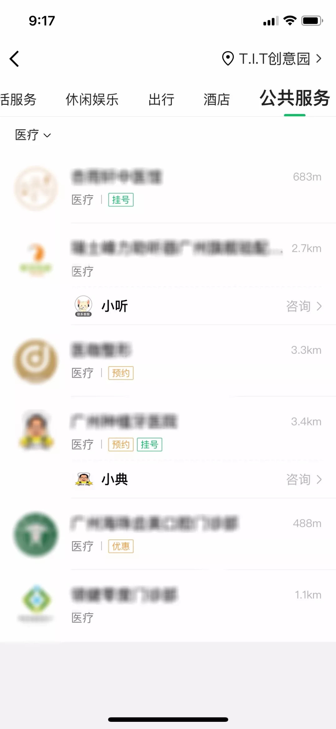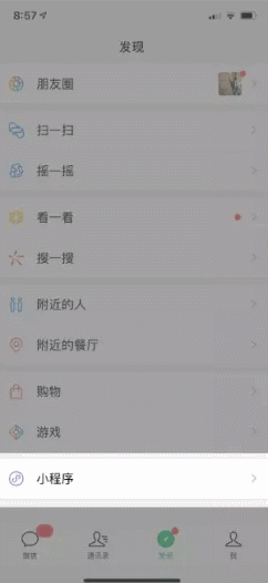 当用户在医院的周围,可在微信小程序入口中“附近的小程序”发现并使用医院小程序提供的预约挂号等服务。