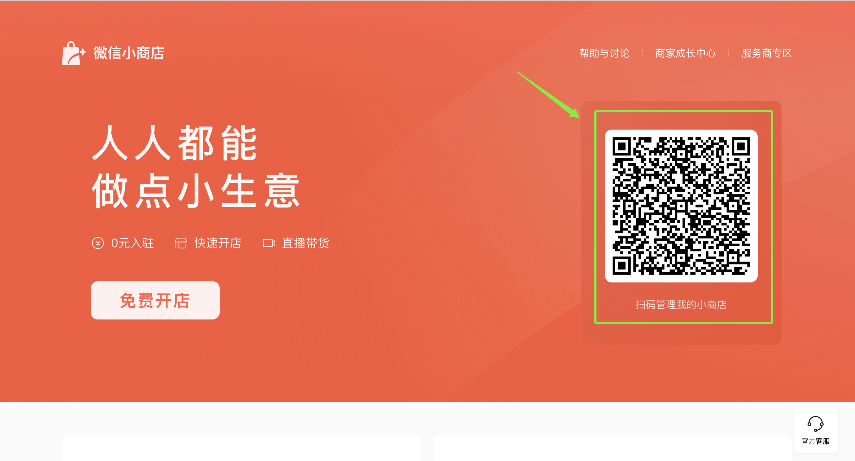前往电脑端打开网页:https://shop.weixin.qq.com,使用手机微信扫一扫页面上的二维码,选择自己的小商店以登录个人店管理后台: