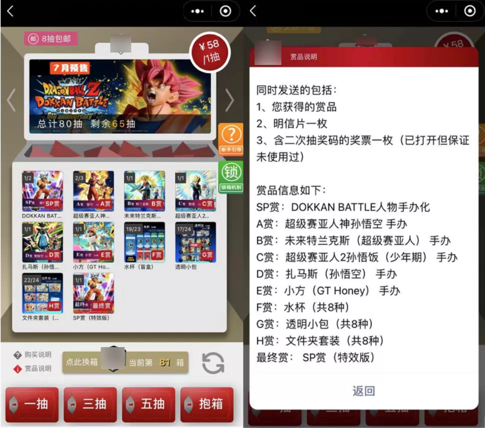 而这种不确定性,也导致不少小程序开发者走上“歧途”,使用非正常方式售卖盲盒产品,进行非法获利,此类情况无异于赌博,违反了《微信小程序平台运营规范》6.1.5:微信小程序不得发布、传送、传播、储存国家法律法规禁止的以下信息内容,否则视为违规:包含赌博、竞猜和抽奖信息等。