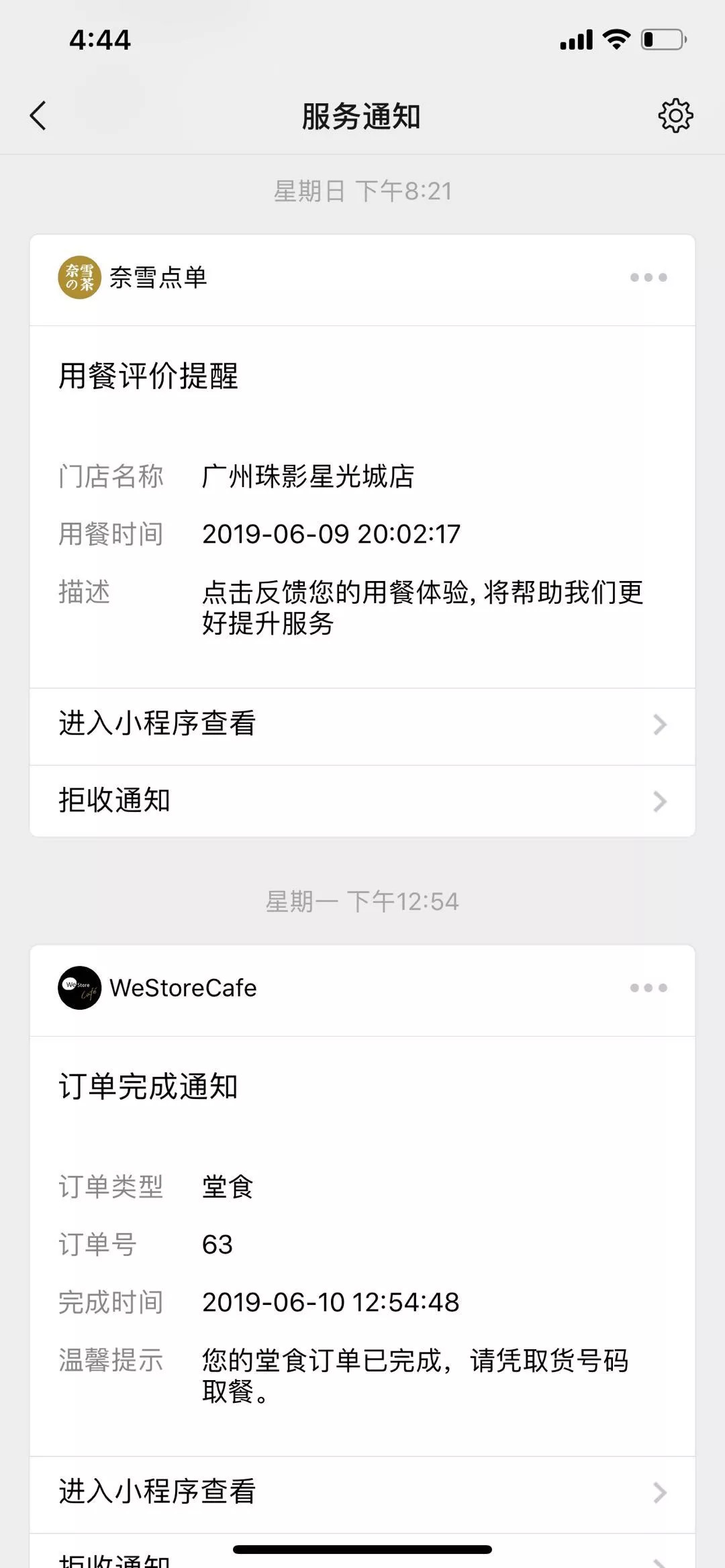 当用户用餐完毕后,通过模板消息发送用餐评价(在线下场景,用餐评价多用于改善菜品设计,考核门店服务质量等)。