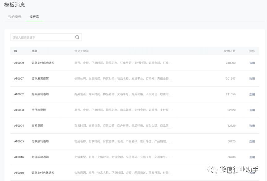 商户可使用官方提供的消息模板,已覆盖大部分模板消息的适用场景。