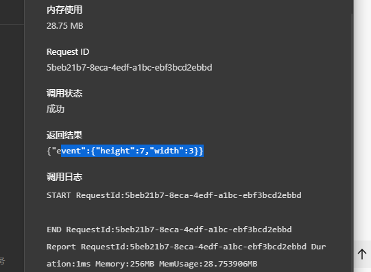 在云端测试的调用结果也是可以在云开发控制台云函数的日志里查看到的。