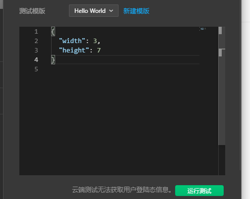 打开云开发控制台的云函数标签页,找到 rectangle 云函数,点击云端测试,同样我们给参数赋值,将以下代码进行修改: