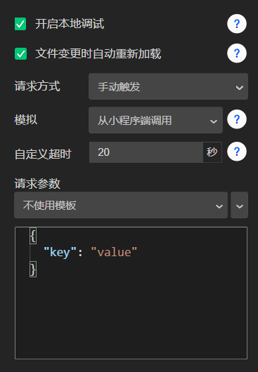 <view class="uploader"><navigator url="../login/login" open-type="navigate" class="uploader-text"><text>登录</text></navigator></view>云函数本地调试,界面如下,微信开发者工具已经是最新版本