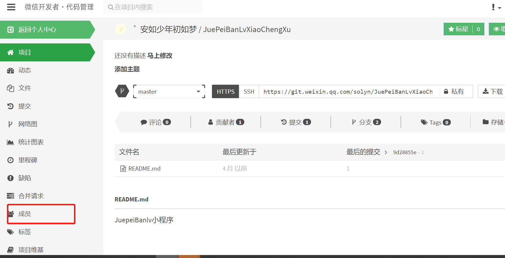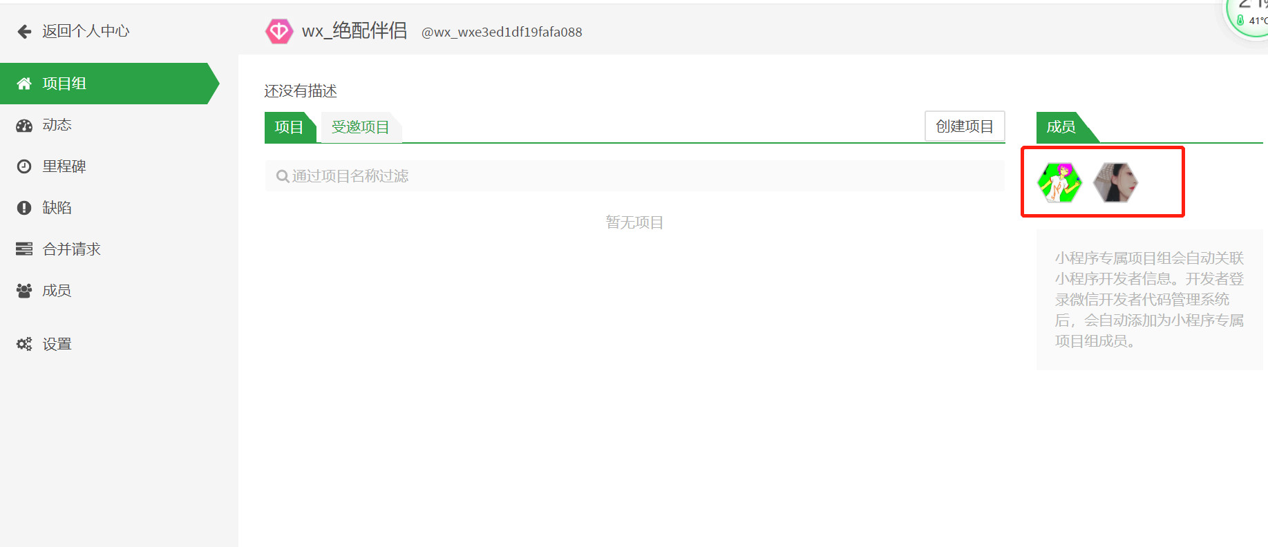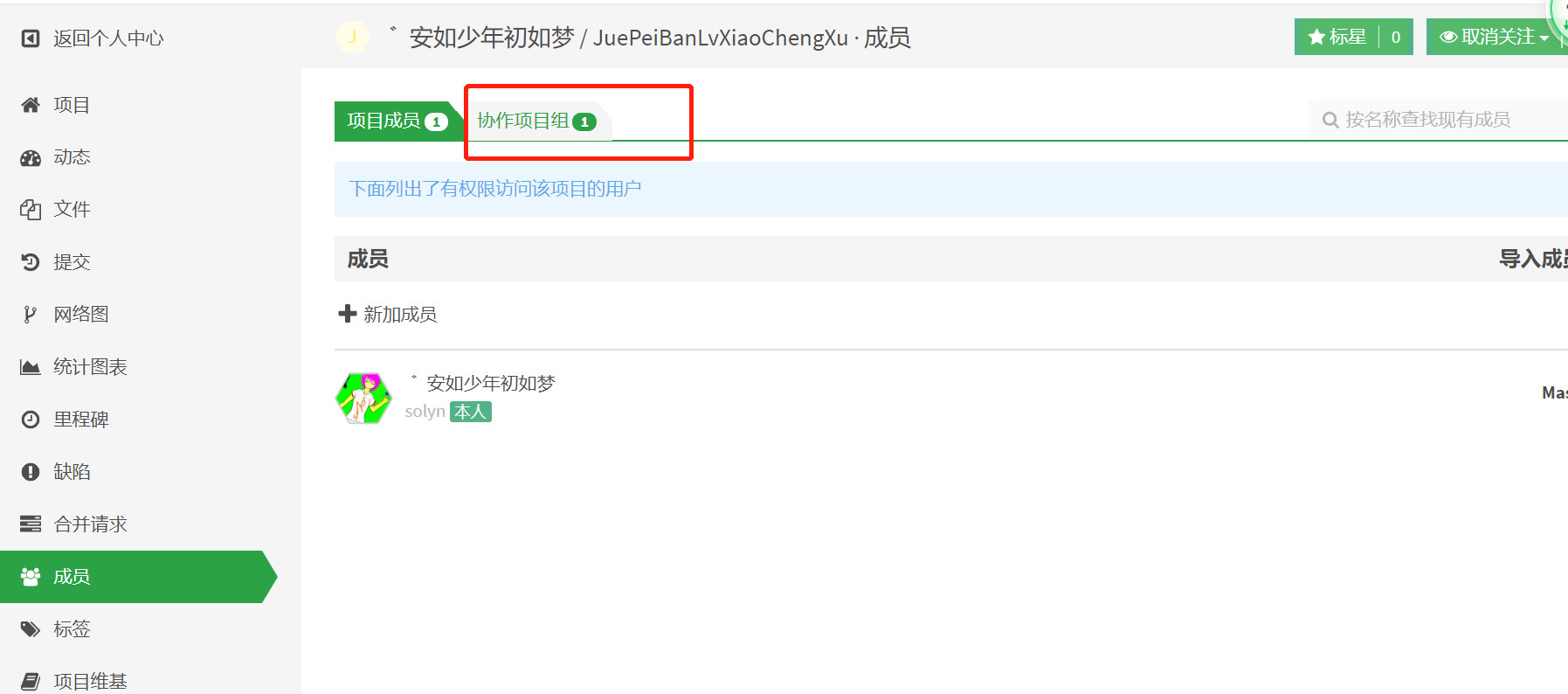 方法:点开自己的项目,点成员。