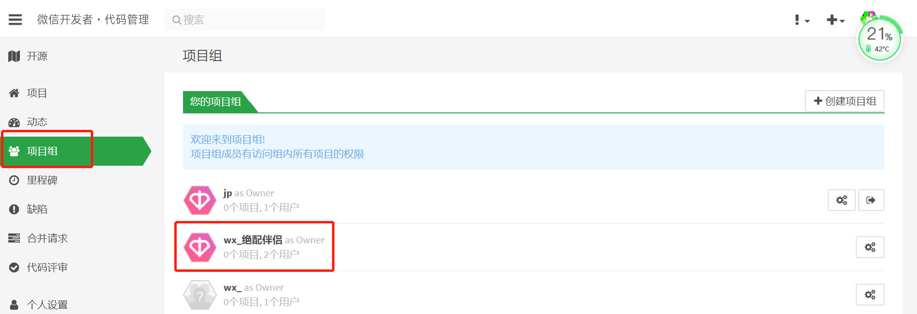 2、登陆代码管理,项目组中会看到多了一个人