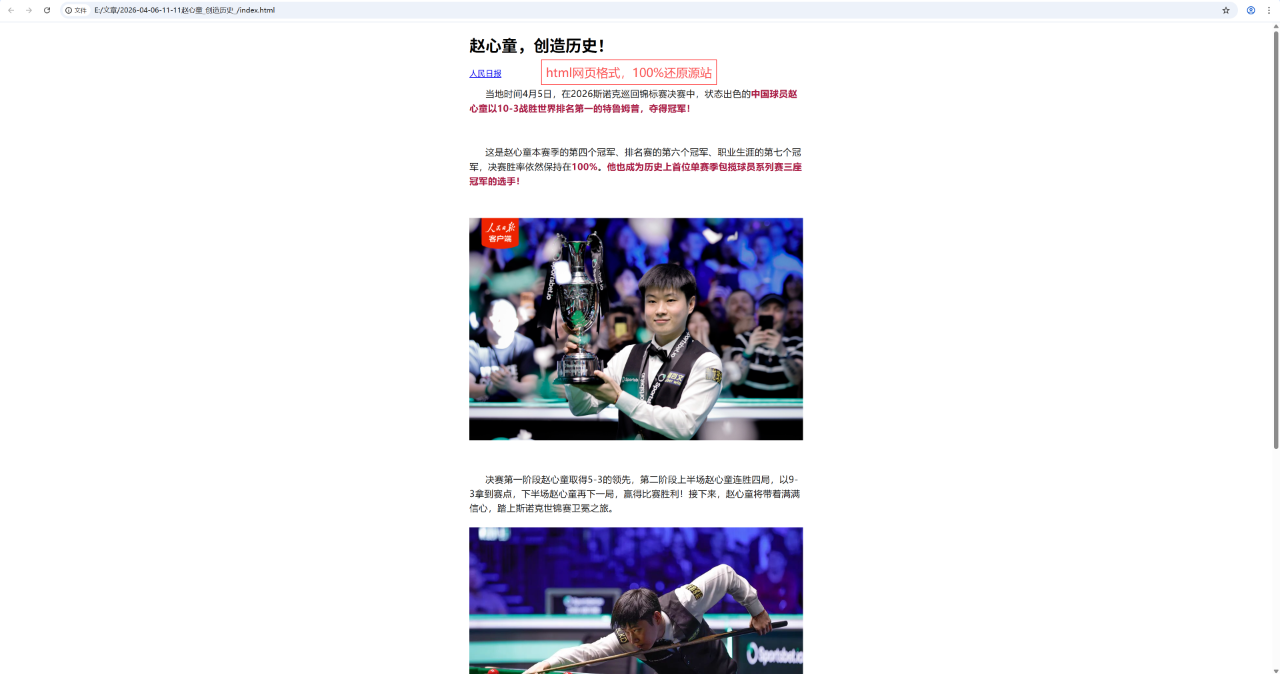 - HTML 像素级还原 - 内联样式 + 资源打包,离线浏览无差异