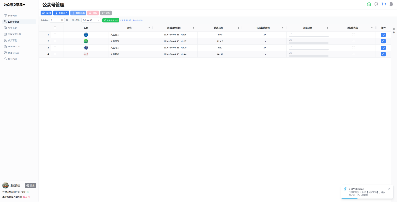 - 公众号模糊搜索 - 支持关键字快速定位目标账号
