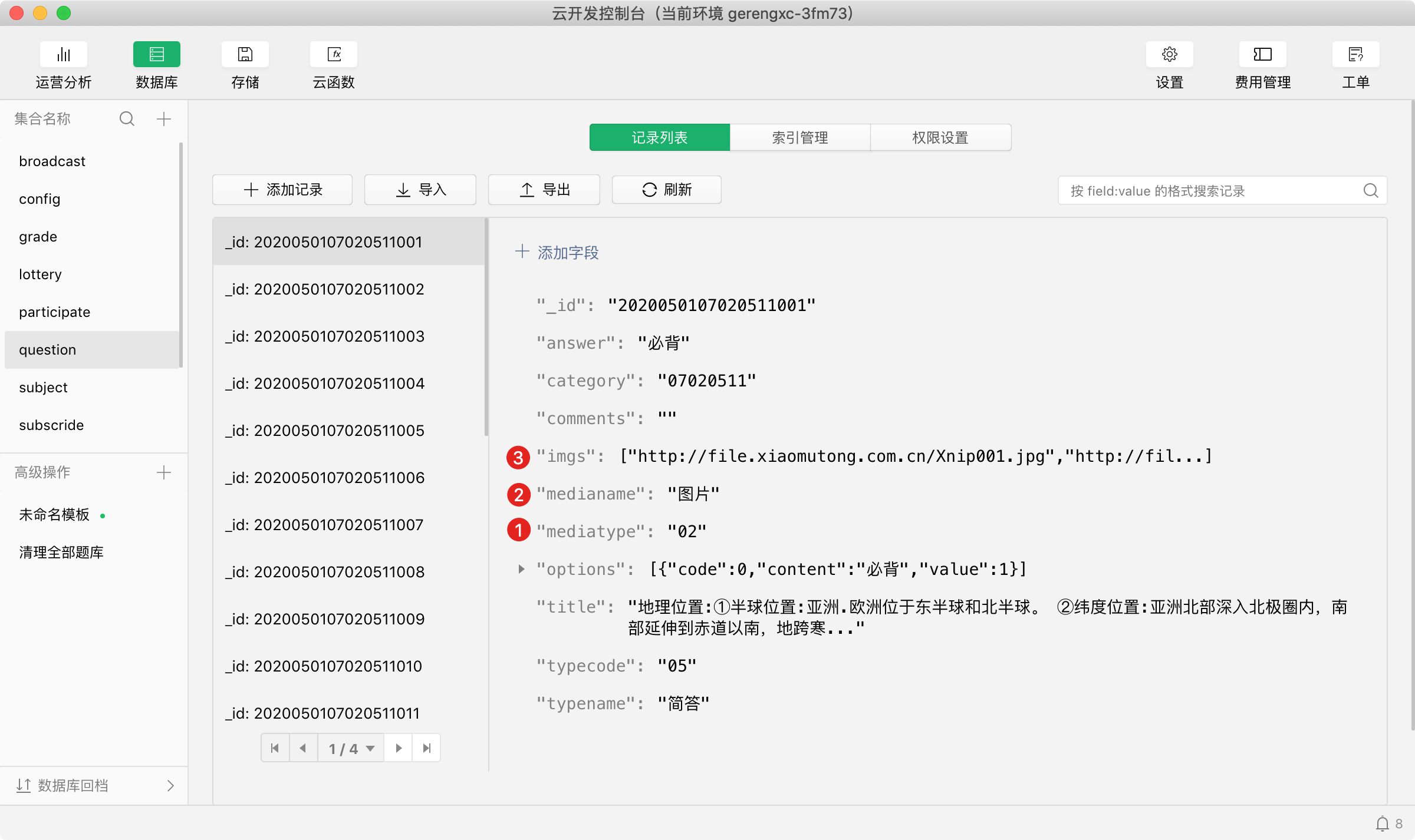 在整理题目素材图片之前,首先要清楚具体对应题目的题目编号,也就是在集合里面Question集合的_id,
