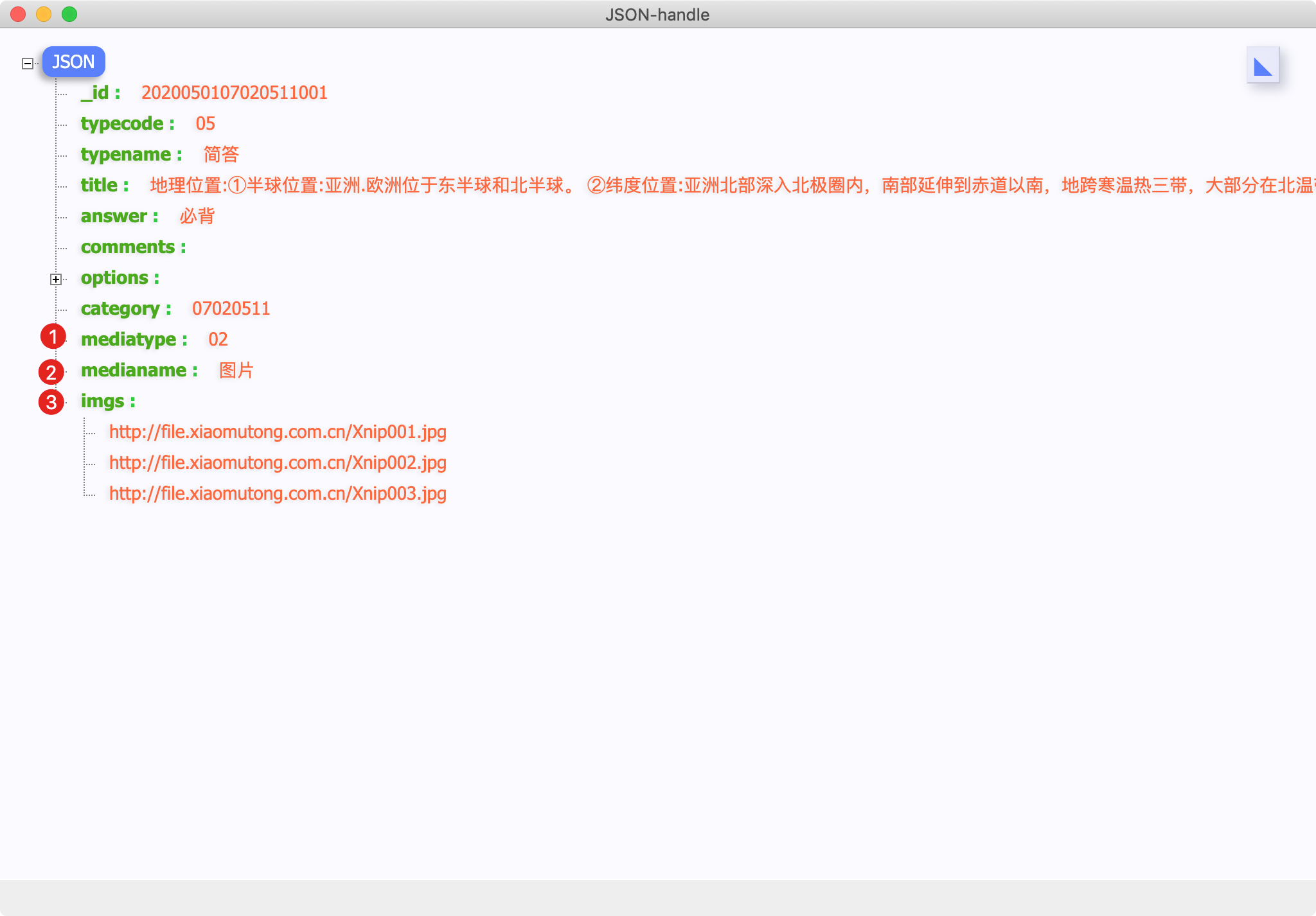 具体我举个栗子:假如集合某个题目的_id为20200515001,该题目有三张图片,那么三张图片按照顺序依次编号为