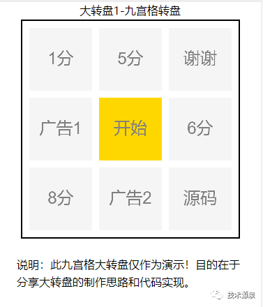 1,画背景图,背景图由9个方块组成。第五个方块为开始方块,起按钮作用。