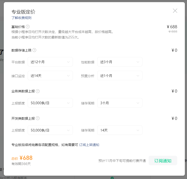 这个专业版设置的真绝,几乎所有用的数据,他都收费,那些免费,自己随便埋个点都能统计到!