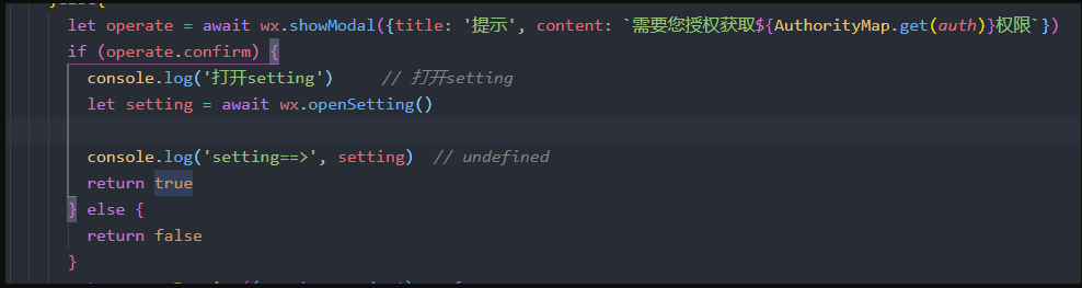 用async和await 调用wx.showModal 在调用wx.openSetting无法跳转权限设置页面