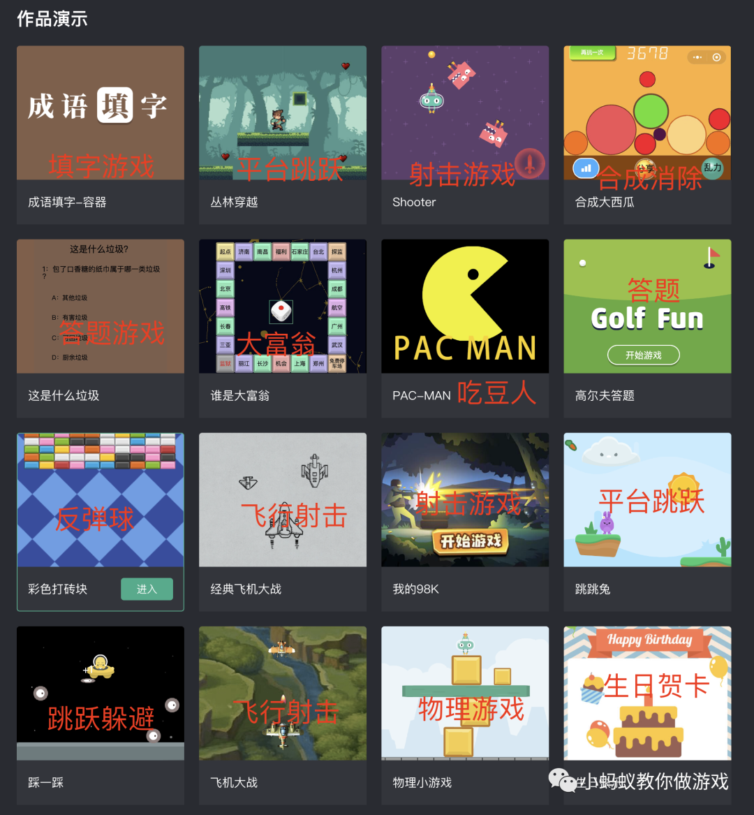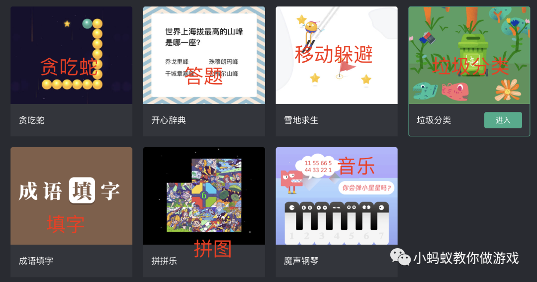 接着再看一下小蚂蚁的一系列游戏和模版。