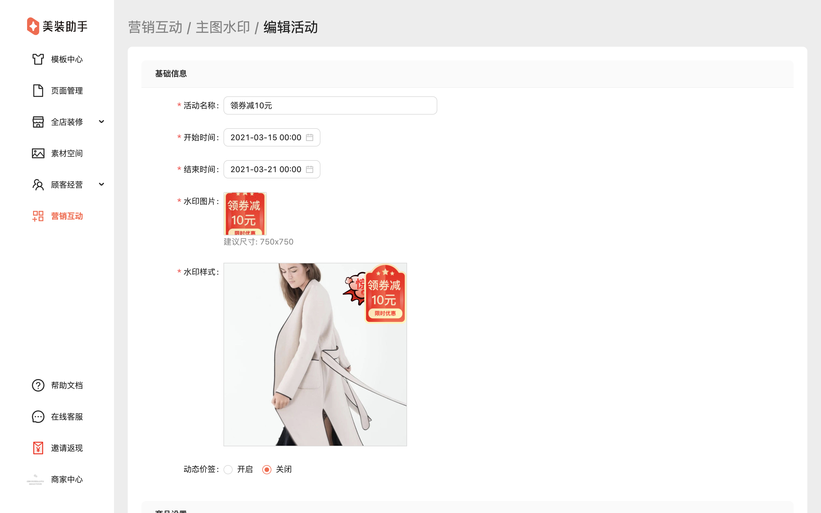 小商店做活动时经常需要更换商品首图怎么办?美装助手主图水印来啦!批量打标、批量改价均可实现!