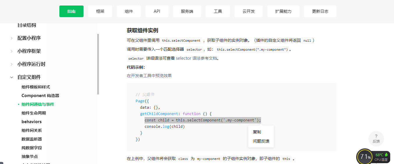 this.selectComponent()可以获取到子组件的里面的数据和方法,还可以获取到properties里面的值