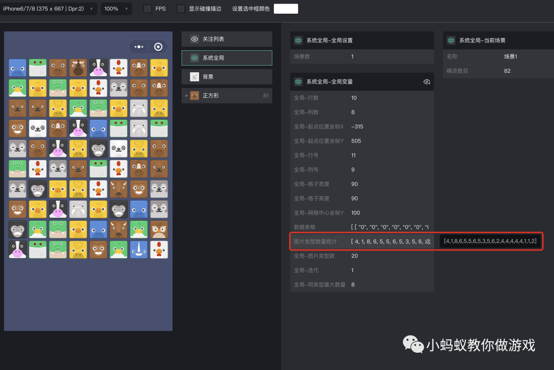 调试一下场景,观察一下图片的生成情况,以及“图片类型数量统计”列表中记录的数据。