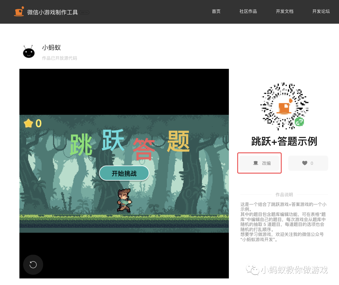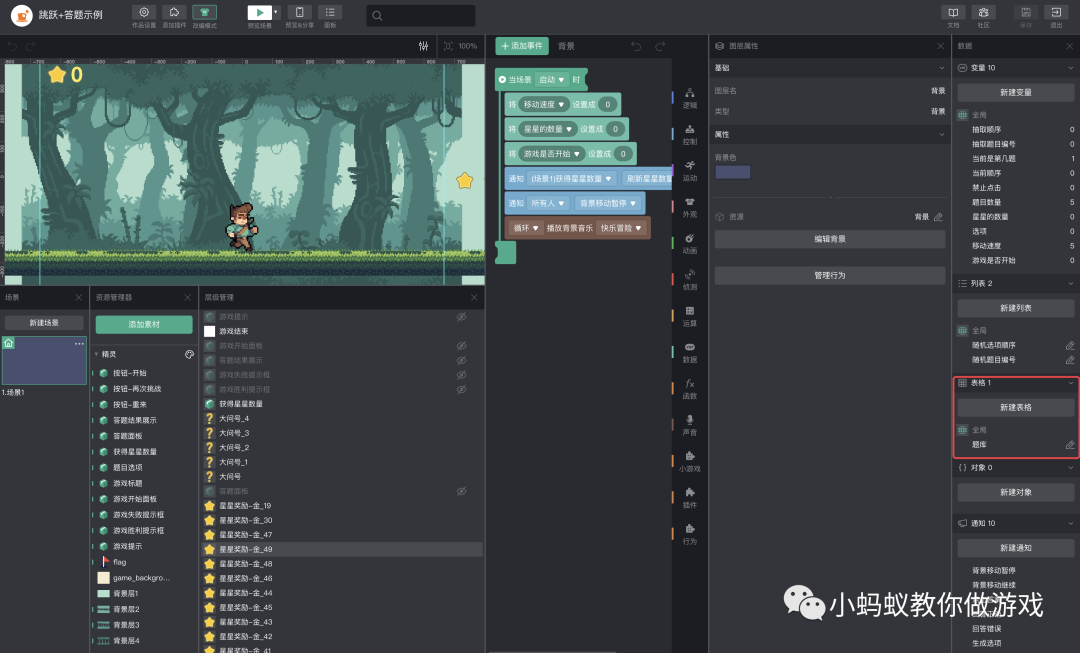 通过游戏,我们其实还可以做更多正向的有意思的事情。例如,这个跳跃答题小游戏,作为一位小学生的家长是不是可以做一个小学二年级的数学题库,给孩子边玩游戏边学算术呢?当孩子玩到高分时,是不是可以约定给予一个奖励呢?作为一个某活动的策划人,是不是可以编辑一个关于活动的题库,然后将游戏分享给用户,让用户在游戏的过程中,顺便了解即将参加的活动内容呢?.....