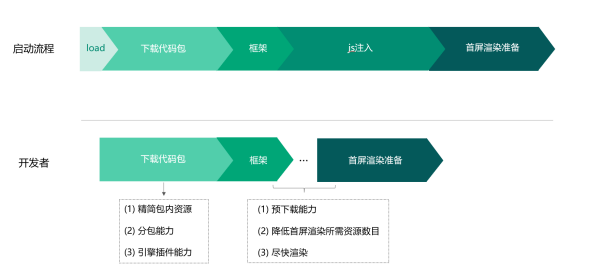 1.首包优化上面,我们可以完全按照官方的建议,尽量减少首包的大小,由于我们对引擎有定制,所以暂未使用引擎插件能力,我们首包中只存放了引擎及基础的启动代码,大小为1.5M。如果使用引擎插件功能,这个大小可以缩减到300K。