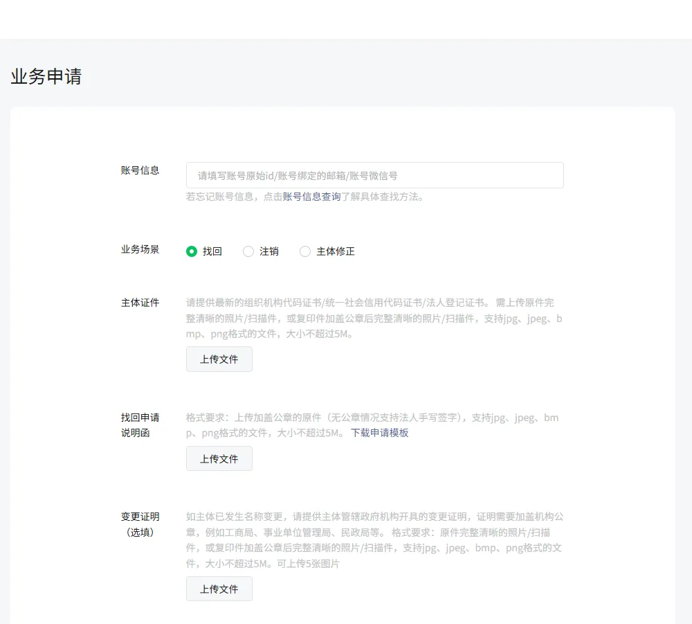 5.具体找回账号界面截图及其他问题参考:https://kf.qq.com/product/weixinmp.html#hid=137