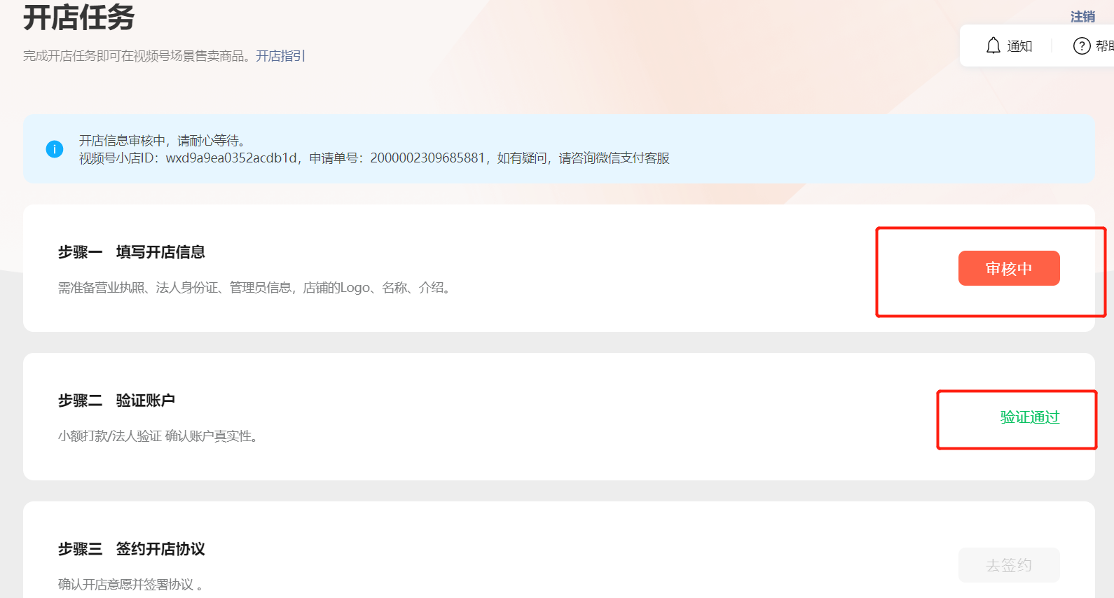 视频号小店已申请超过20个工作日,咨询微信支付客服答复入驻申请单已经审核通过,但视频号小店页面还是显示“审核中”,无法进行下一步操作,(步骤二验证账户早已通过十多天),请问这个要怎么处理;客服人员让我在这里发帖提问解决