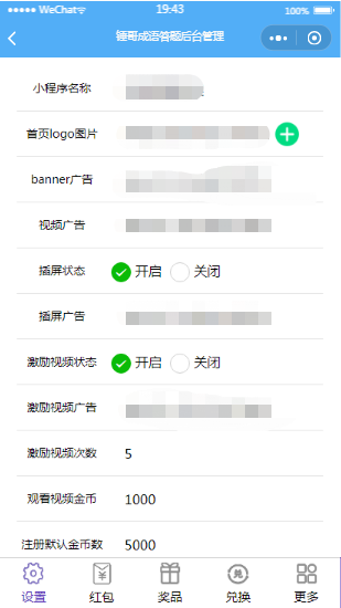 成语答题小程序后台设置页面