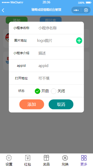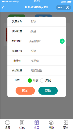 成语答题小程序添加奖品页面