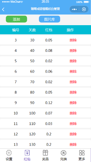 成语答题小程序手机版后台页面开发