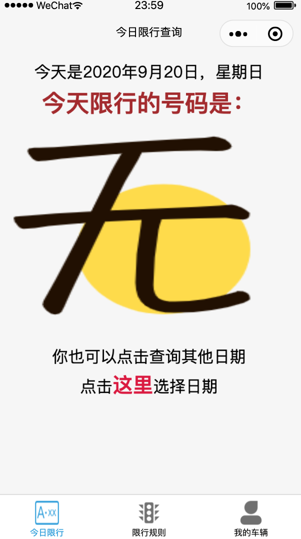 应用场景:郑州地区机动车限行查询,将来可能查询到全国