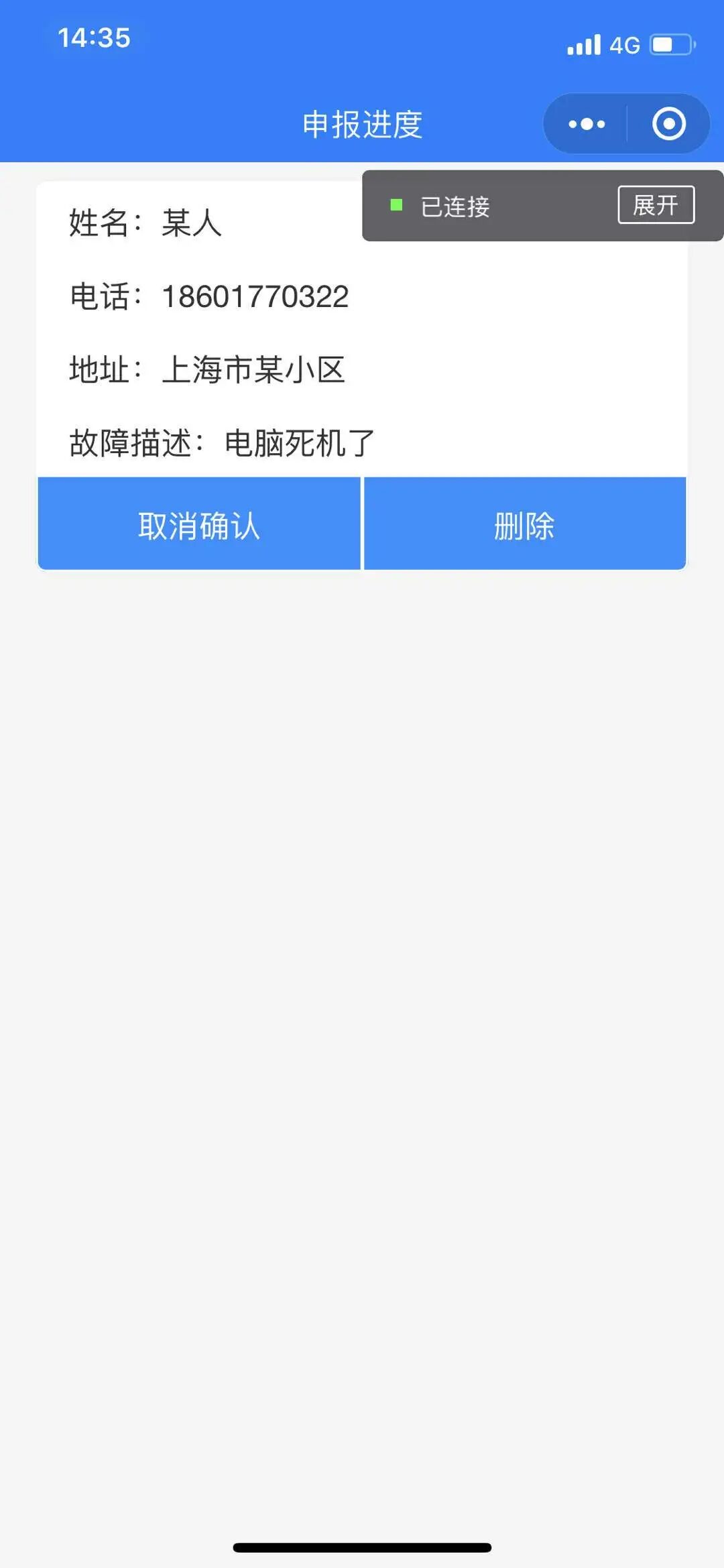 维修团队,可以拉取问题列表,更新问题进展,派专门的人员联系居户,进行电话解答或者上门维修。