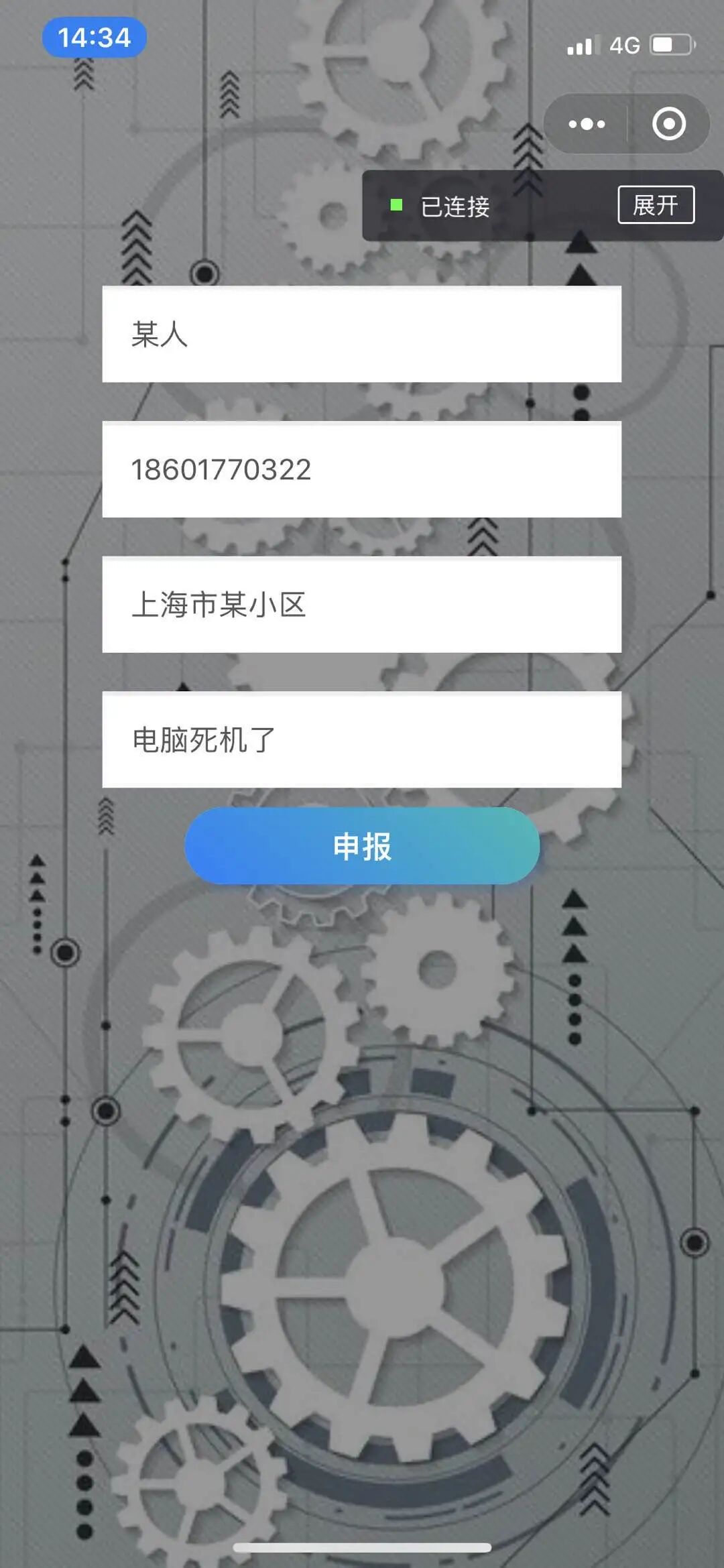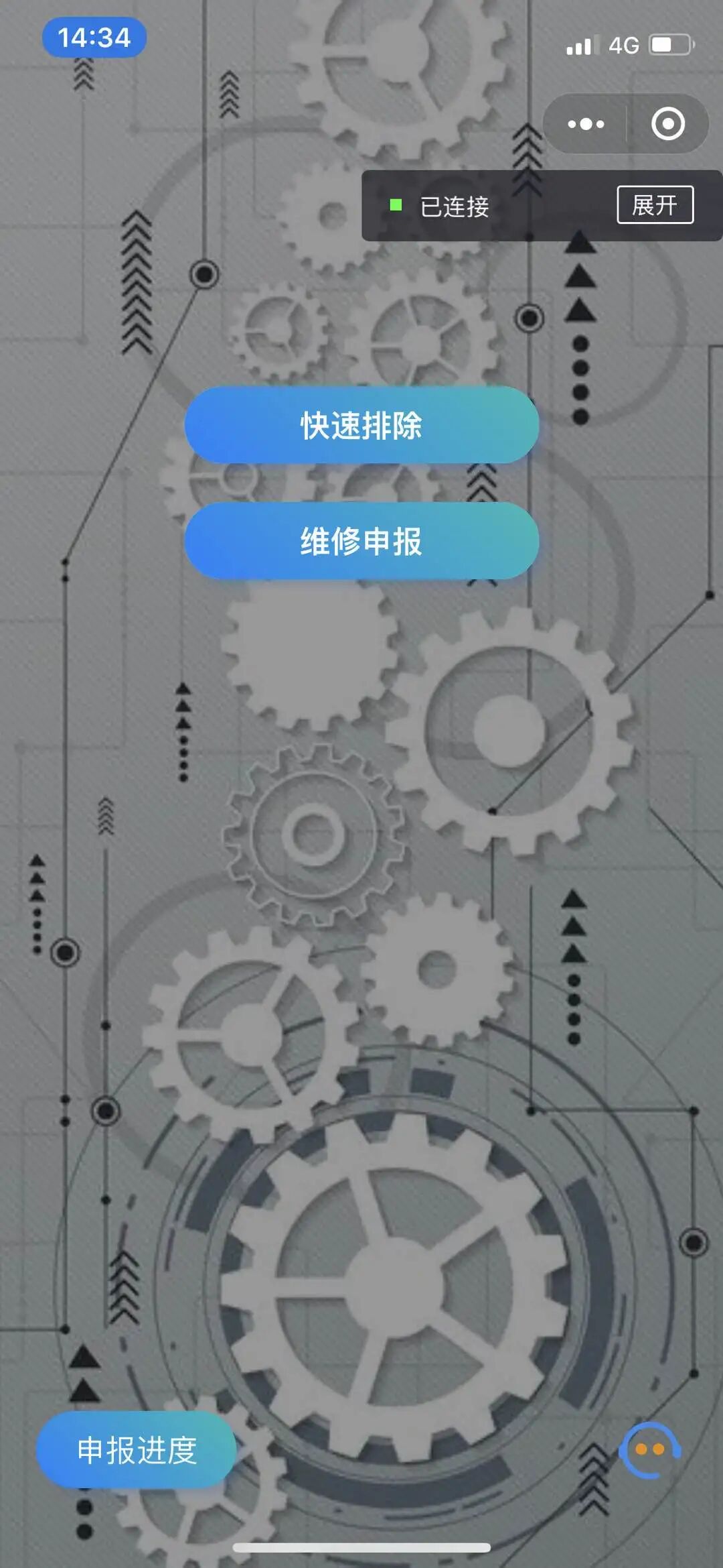 社区居户当家里出现家电、地板、水电等需要请专业人员维修的问题时,可能苦于无法快速找到专业的人员。此时通过该小程序进行简易问题查询、复杂问题申报等形式,排查解决问题,并且可以实时查看问题进展。